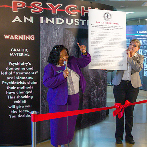 Devastated by what amounted to the loss of her sister, James happened upon a Psychiatry: An Industry of Death exhibit while she was on a break from session in the Georgia State Senate building. Her life was totally changed by seeing the exhibit.
